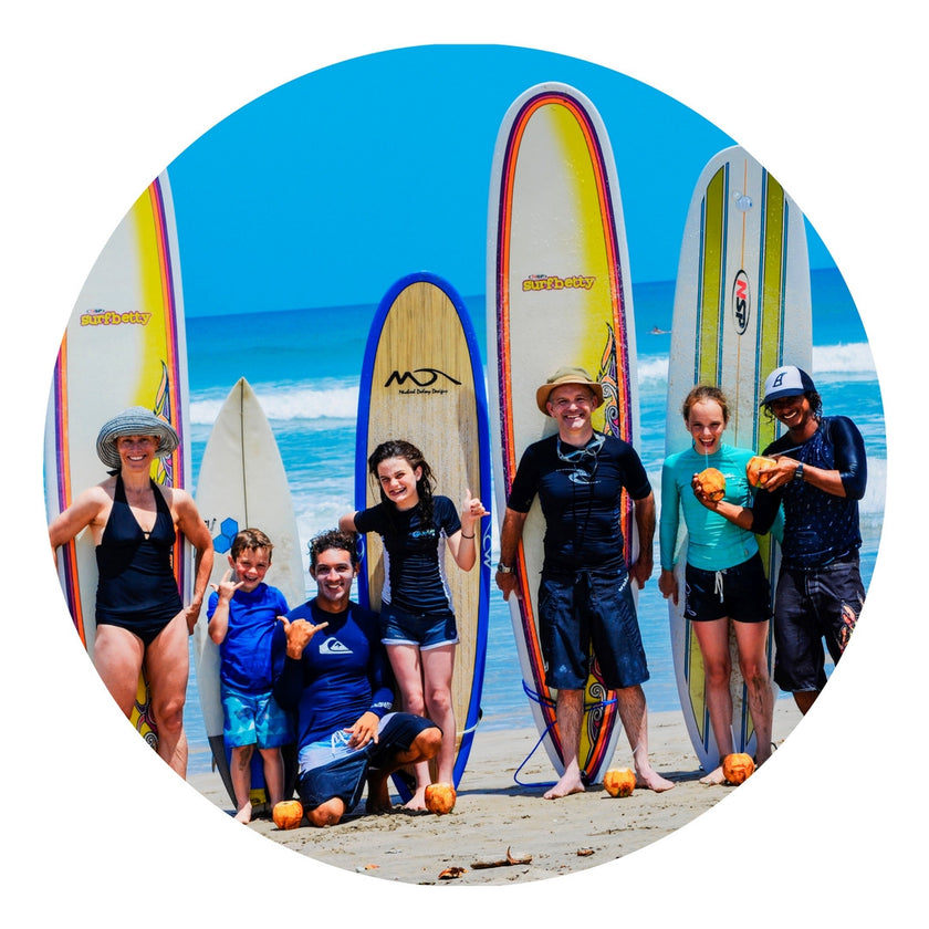 "Every day was its own special bundle of gifts. From first learning the “chicken-wing” approach to popping-up on our surfboards to our farewell hugs outside Casa Bella Costa, Nosara Family Surf's team quickly became our trusted friends in an otherwise strange place."